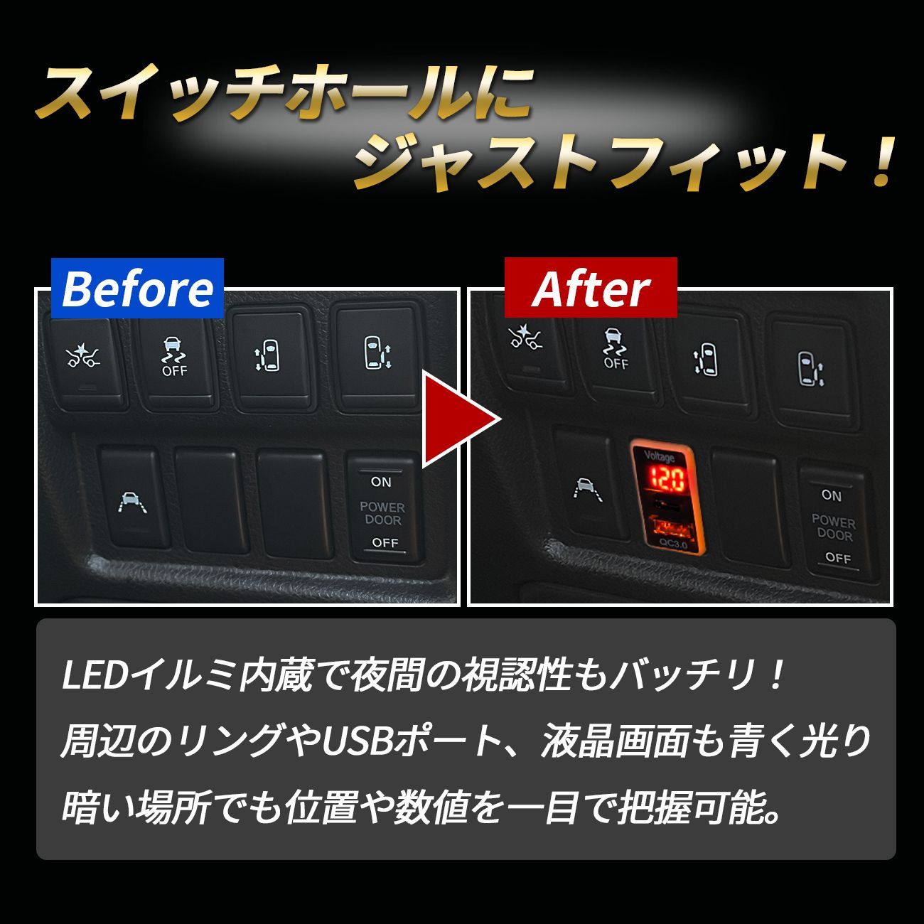今大人気の電圧計表示付きのUSBポートです!